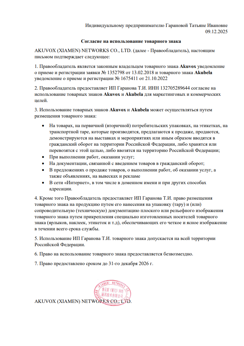 Наш магазин является официальным партнёром Akuvox, а так же его суббренда Akubela, и имеет право на использование товарных знаков и логотипов в соответствии с предоставленным разрешением.