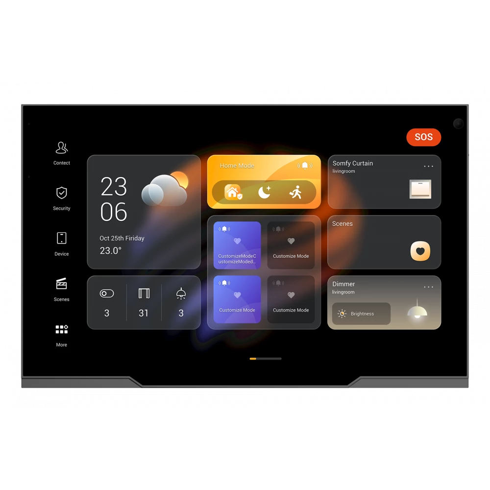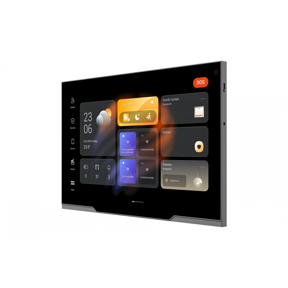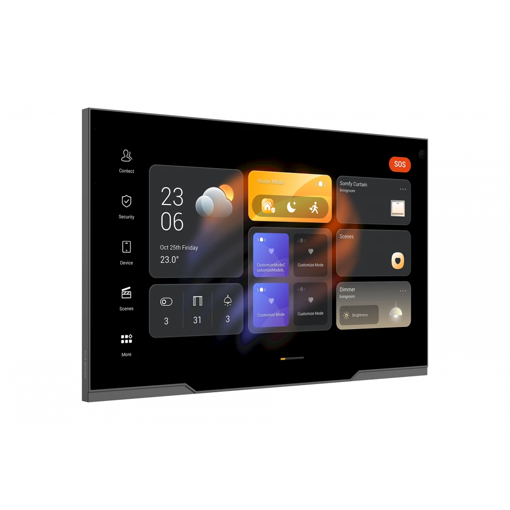 флагманская сенсорная панель для управления умным домом. Оснащена большим 12,35-дюймовым экраном с разрешением 2.5K, камерой с шторкой приватности, а также сенсором распознавания жестов. Поддерживает Android 12 и функции межкомнатной связи, работает в качестве шлюза ZigBee и центра управления для сторонних платформ. Элегантный металлический корпус и тонкие рамки подчеркивают премиальный характер устройства
