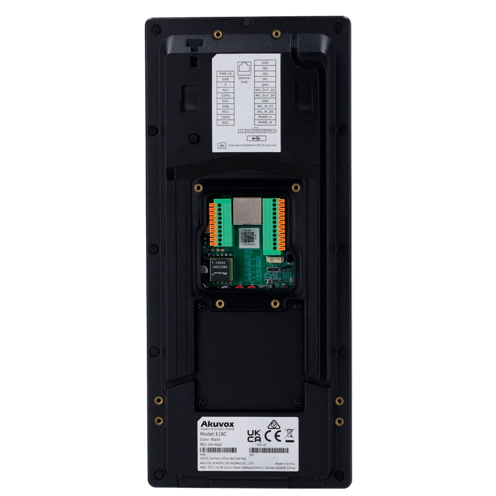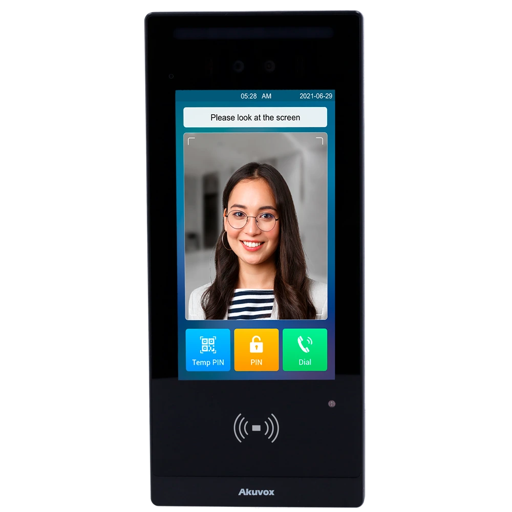 Akuvox E18C объединяет функции IP-видеодомофона и системы контроля доступа в одном устройстве. Она обеспечивает двухстороннюю аудио- и видеосвязь, мгновенное распознавание лиц и безопасный вход без ключей.