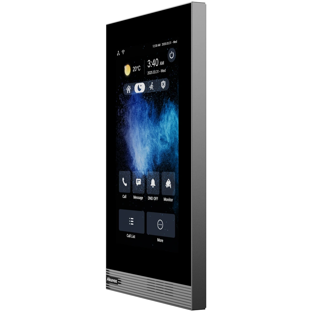 Akuvox S563 можно установить вертикально — интерфейс будет адаптирован под выбранное положение. Это удобно для узких пространств, нестандартных ниш или дизайнерских решений.