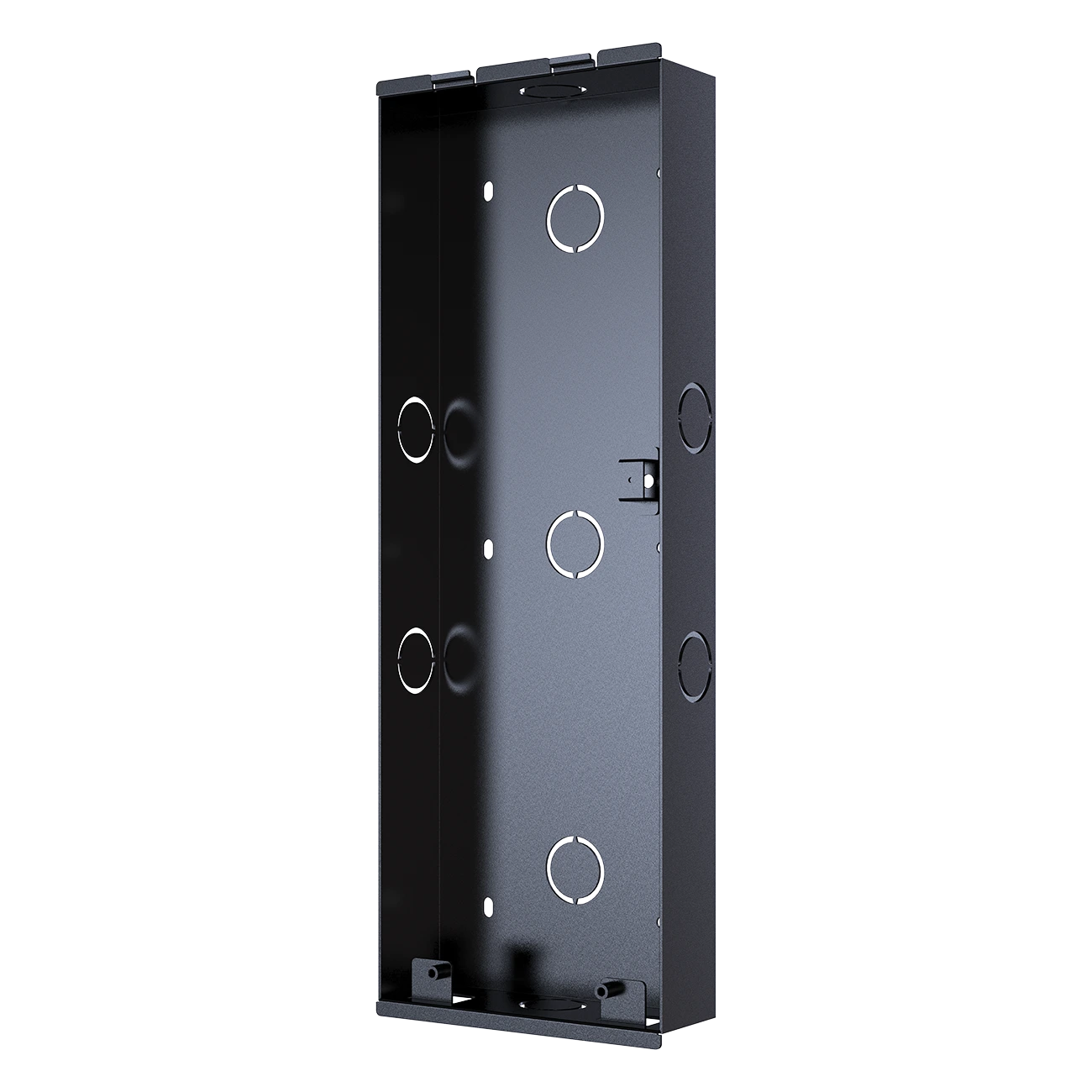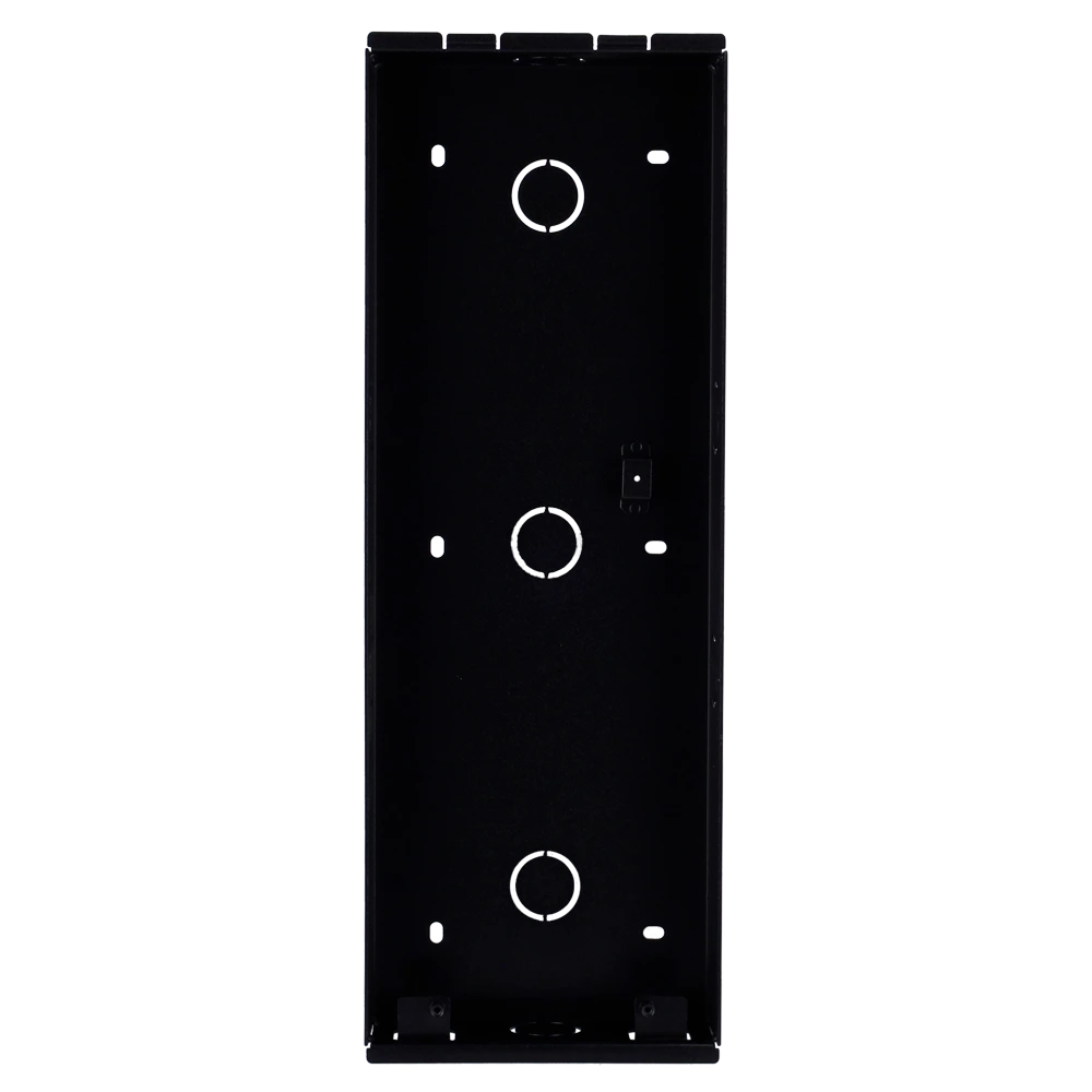 Монтажный короб X915XF разработан специально для врезного монтажа вызывной панели Akuvox X915S. Он представляет собой стальную коробку чёрного цвета, которая устанавливается в подготовленное отверстие в кирпичной, бетонной или гипсовой стене позволяя сохранить эстетику фасада и обеспечив максимальную защиту оборудования. После установки короб обеспечивает ровное прилегание панели к поверхности и защищает электронную часть от повреждений и погодных условий. Благодаря точным размерам и предусмотренным креплениям короб гарантирует безопасную фиксацию устройства и аккуратный вид без выступающих элементов.