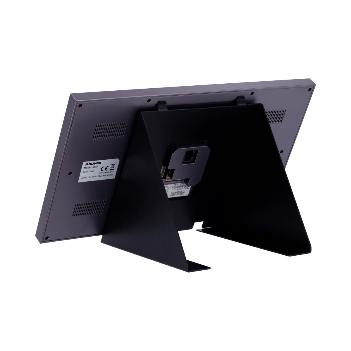 Настольная подставка предназначена для установки монитора Akuvox S567 или S565 на горизонтальной поверхности без необходимости настенного монтажа. Она обеспечивает устойчивое положение устройства и удобный угол обзора для повседневного использования.